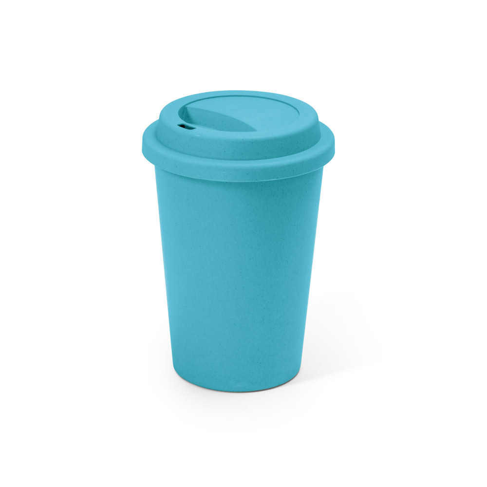 Copo de viagem em fibra de bambu (60%) e PP (40%) com tampa e capacidade até 450 mL. Certificação EU Food Grade