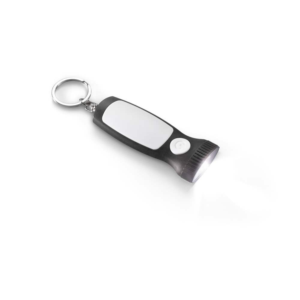 Chaveiro em ABS com luz LED. Incluso 3 pilhas AG10