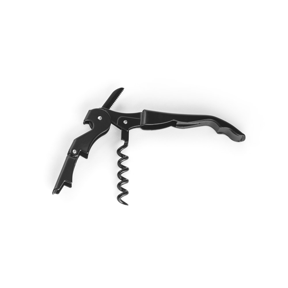 Saca-rolhas em metal e PP com abridor de garrafas e canivete de sommelier. Espiral em aço inox