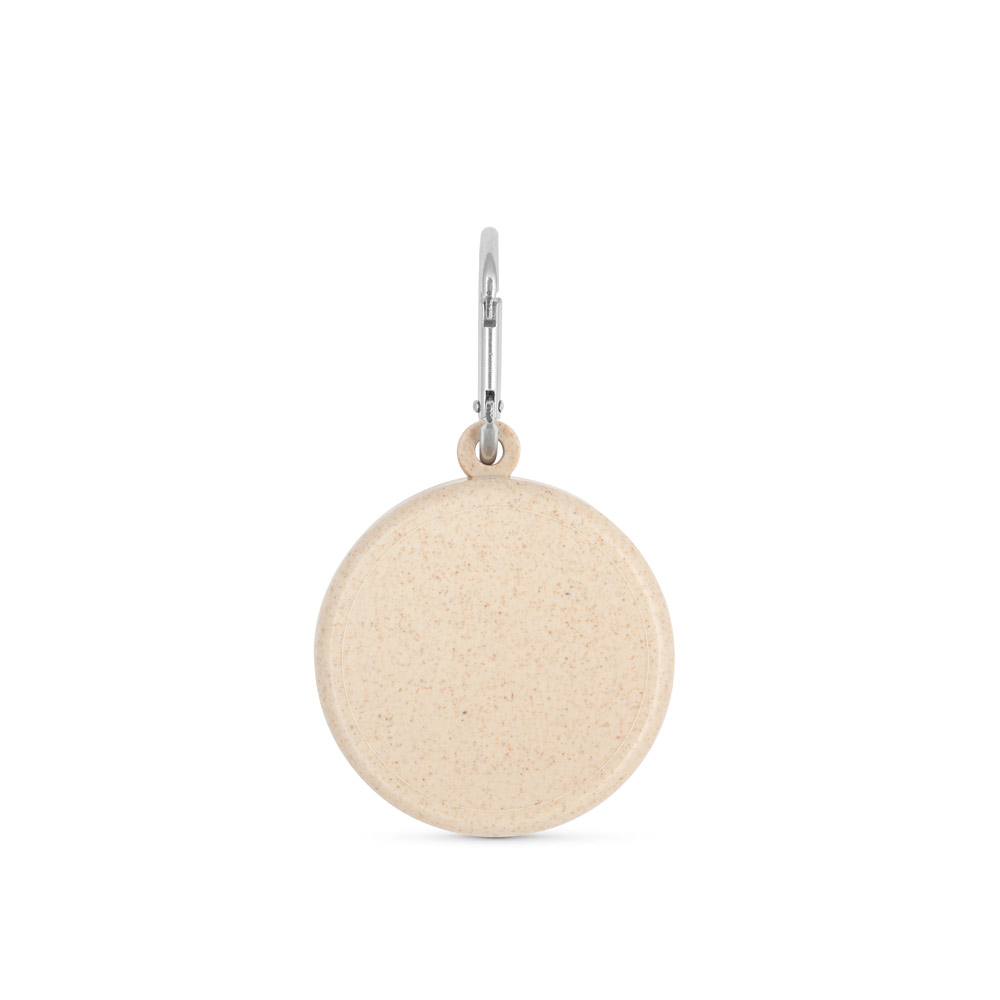 Copo de viagem retrátil em fibra de bambu (60%) e PP (40%) com capacidade até 210 mL. Incluso caixa para comprimidos e mosquetão. Certificação EU Food Grade. ø65 x 33 mm