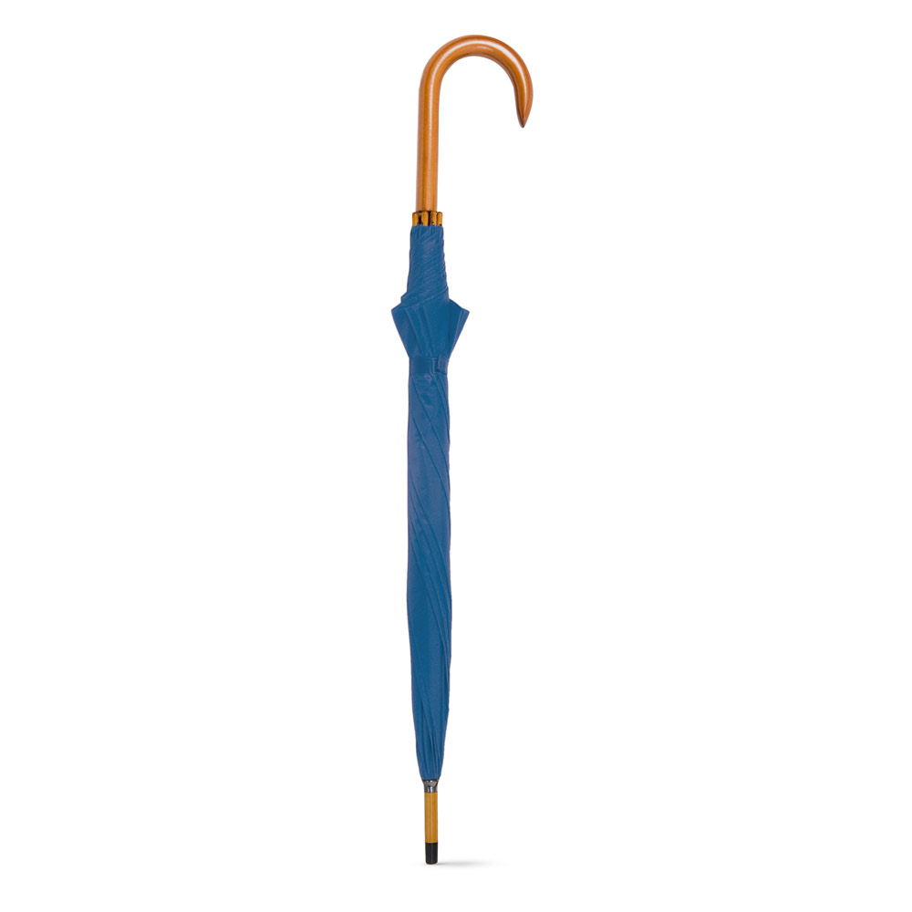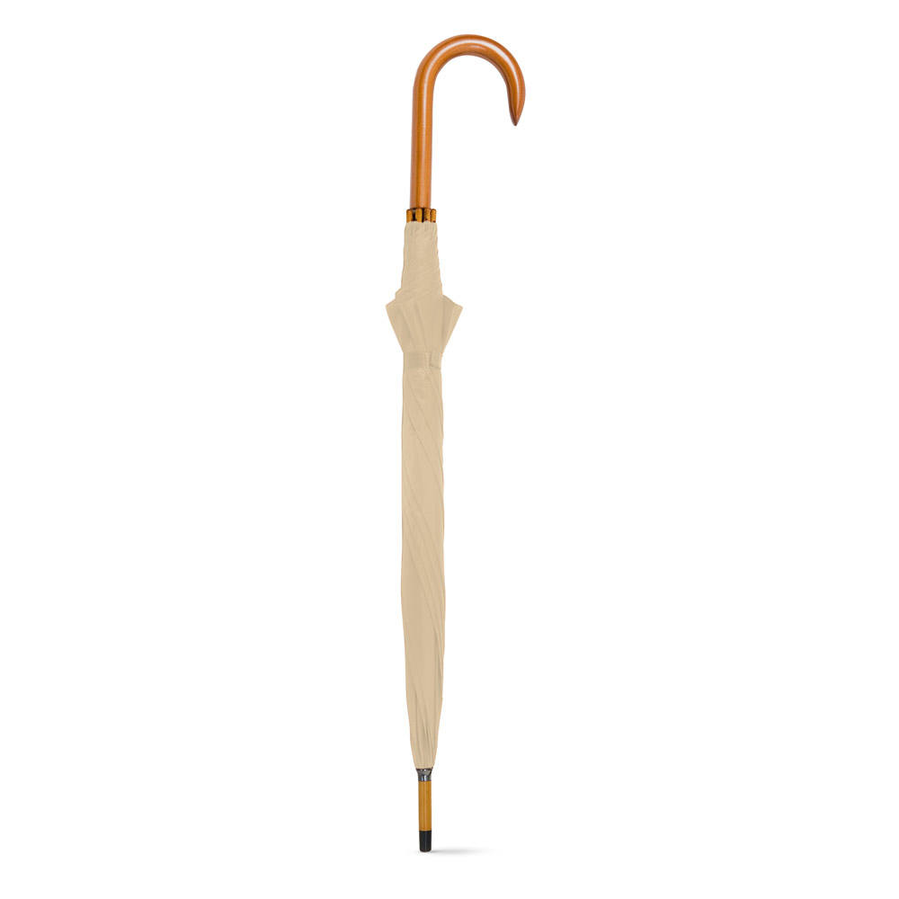 Guarda-chuva em poliéster 190T, com haste em metal e pega em madeira. O guarda-chuva tem abertura automática. ø1040 x 885 mm