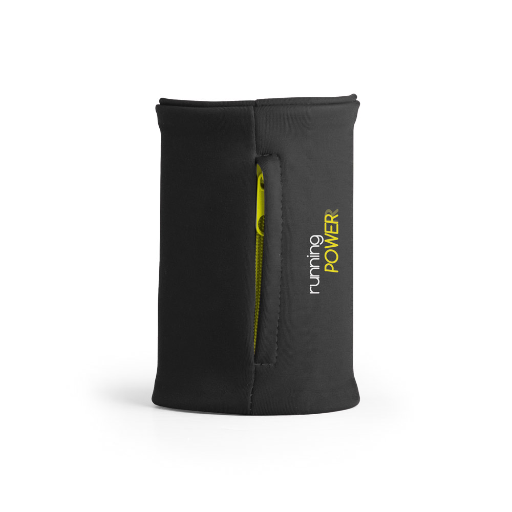 Punho elástico em poliéster com bolso com zíper, ideal para guardar bens de pequeno tamanho e usar durante a prática esportiva. 100 x 100 mm