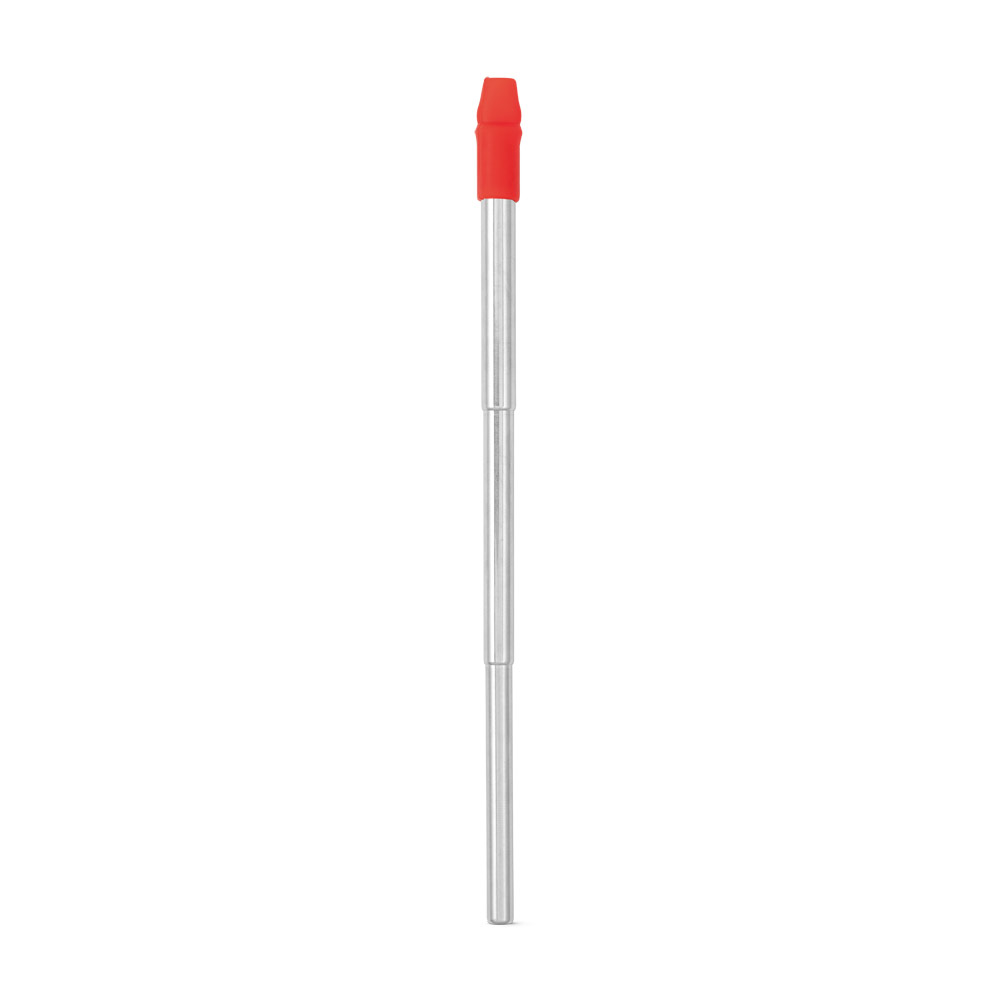 Conjunto de canudo em aço inox e escova de limpeza. Fornecido em estojo com mosquetão. Certificação EU Food Grade. Canudo: ø9 x 218 mm | Estojo: ø10 x 105 mm