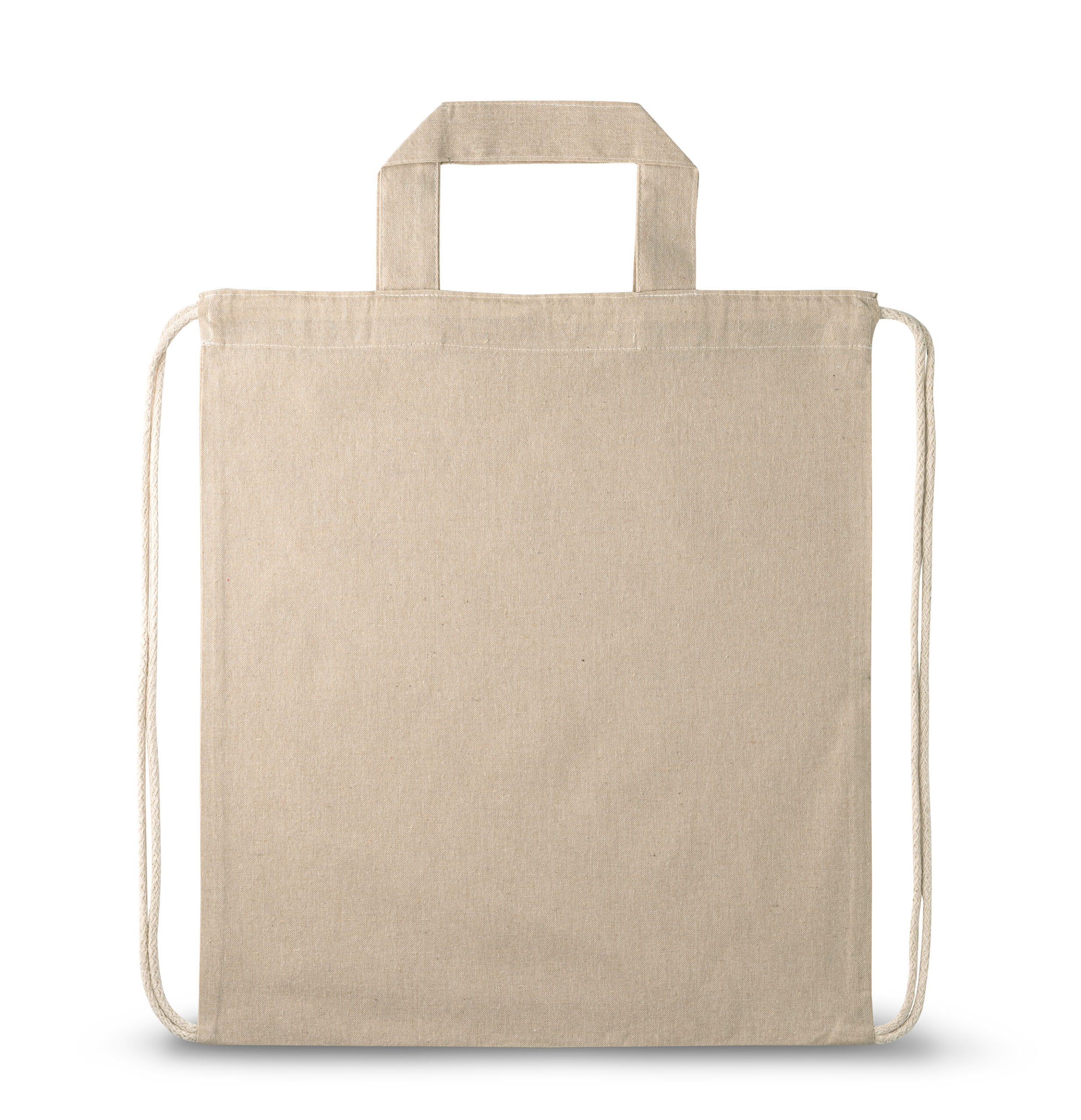 RISSANI. Sacola tipo mochila em 70% algodão reciclado e 30% poliéster reciclado (140g/m²) sem tingimento