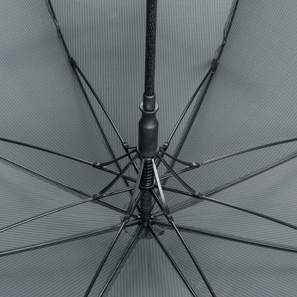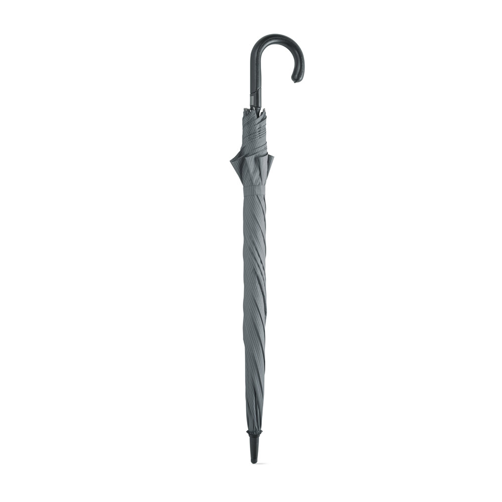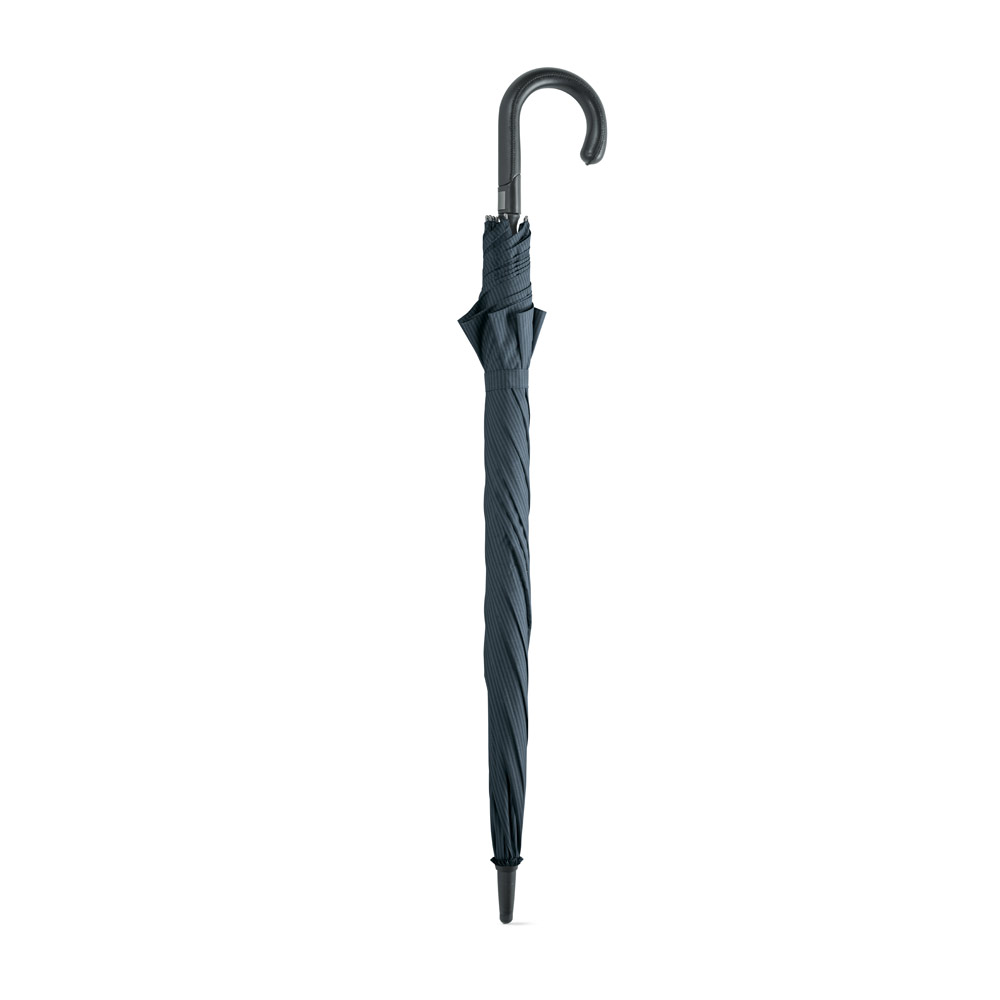 Guarda-chuva em poliéster pongee 190T com varetas em fibra de vidro e pega em c. sintético. Guarda-chuva à prova de vento com abertura automática